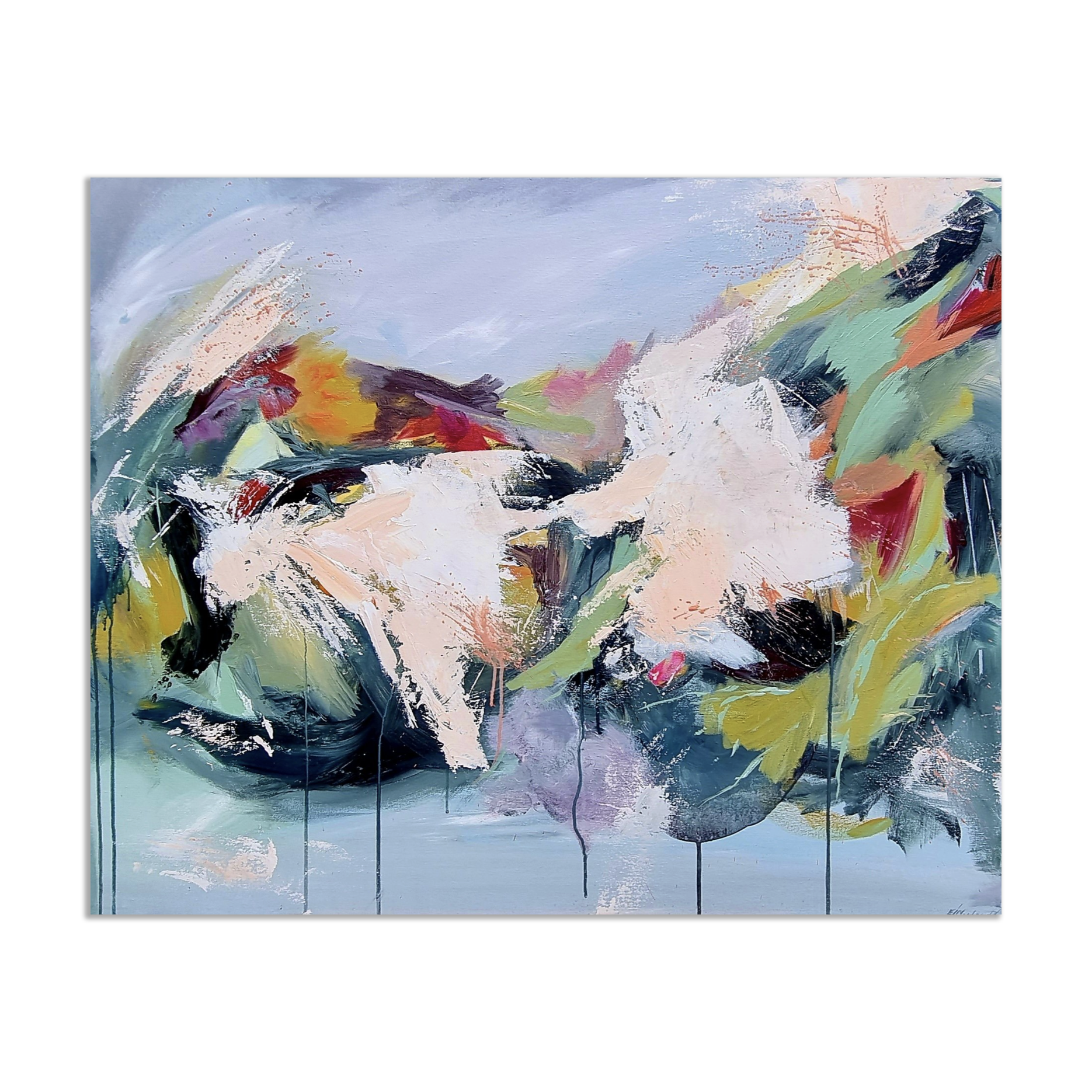 Gallery › Two's Company Image 1 of 4 Image 2 of 4 Image 3 of 4 Image 4 of 4 Two's Company £1,450.00 Original acrylic on canvasCanvas size 120cm(W) x 100cm(H)Framed canvas size 125cm(W) x 106cm(H)White wood tray frame Add To Cart Added! Original acrylic on canvasCanvas size 120cm(W) x 100cm(H)Framed canvas size 125cm(W) x 106cm(H)White wood tray frame